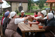 Der Innenhofbereich des Landguts Marienhöhe mit Café, Biergarten und Museumsshops kann an veranstaltungsfreien Öffnungstagen auch ohne Besuch des Mittelalterparks betreten werden.